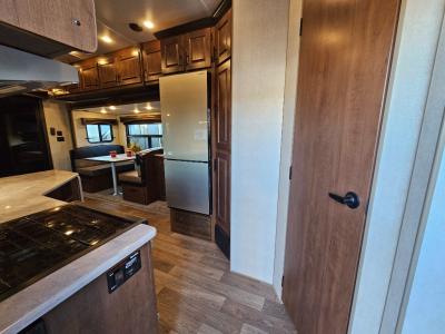 You'll love every minute spent in this cozy travel trailer. There is a rear patio deck with a rail system and stairs, along with a residential sliding glass door that leads to the rear living area. Your crew can play a game at the booth dinette or relax on the residential sofa with built-in recliners. If you're needing more sleeping space, just choose the optional sleeper sofa in place of the standard sofa. There are even optional TRX recliners if want that option as well! The fully-equipped kitchen includes everything you need to make meals each day, plus a 12V refrigerator and pantry for food storage. The flip-up counter will also come in handy when you need extra counter space. Head up front to find the dual entry bath and front master bedroom with a queen bed!