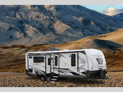 With any Black Stone Titanium Series travel trailer by Outdoors RV you will enjoy the sleek design frameless thermal pane windows, along with the silver fiberglass front cap and Titanium Series graphics package. The rugged 8' chassis with 5,200 lb. axles and XL ground clearance will make maneuvering tougher terrain easier than ever, and there is a ground control TT auto leveling system for hassle-free set-up. Each model includes LG solid surface countertops, mountain lodge interiors, hardwood slide out fascia(s), and many more comforts!